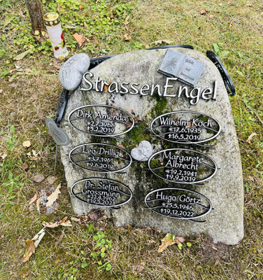 StrassenEngel e.V. begleitet diese Menschen liebevoll und würdevoll auf ihrem letzten Weg. Nach einer herzlichen Aussegnung (Trauerfeier) mit dem Pfarrer im Haus der StrassenEngel werden die Urnen der Verstorbenen am "Baum der StrassenEngel" am Hanauer Hauptfriedhof beigesetzt. Mehr dazu