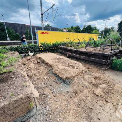 🌱 Zwei Hochbeete in unserem StrassenEngel-Garten mussten (leider) weichen, um Platz für unsere zwei neuen Teiche zu schaffen.