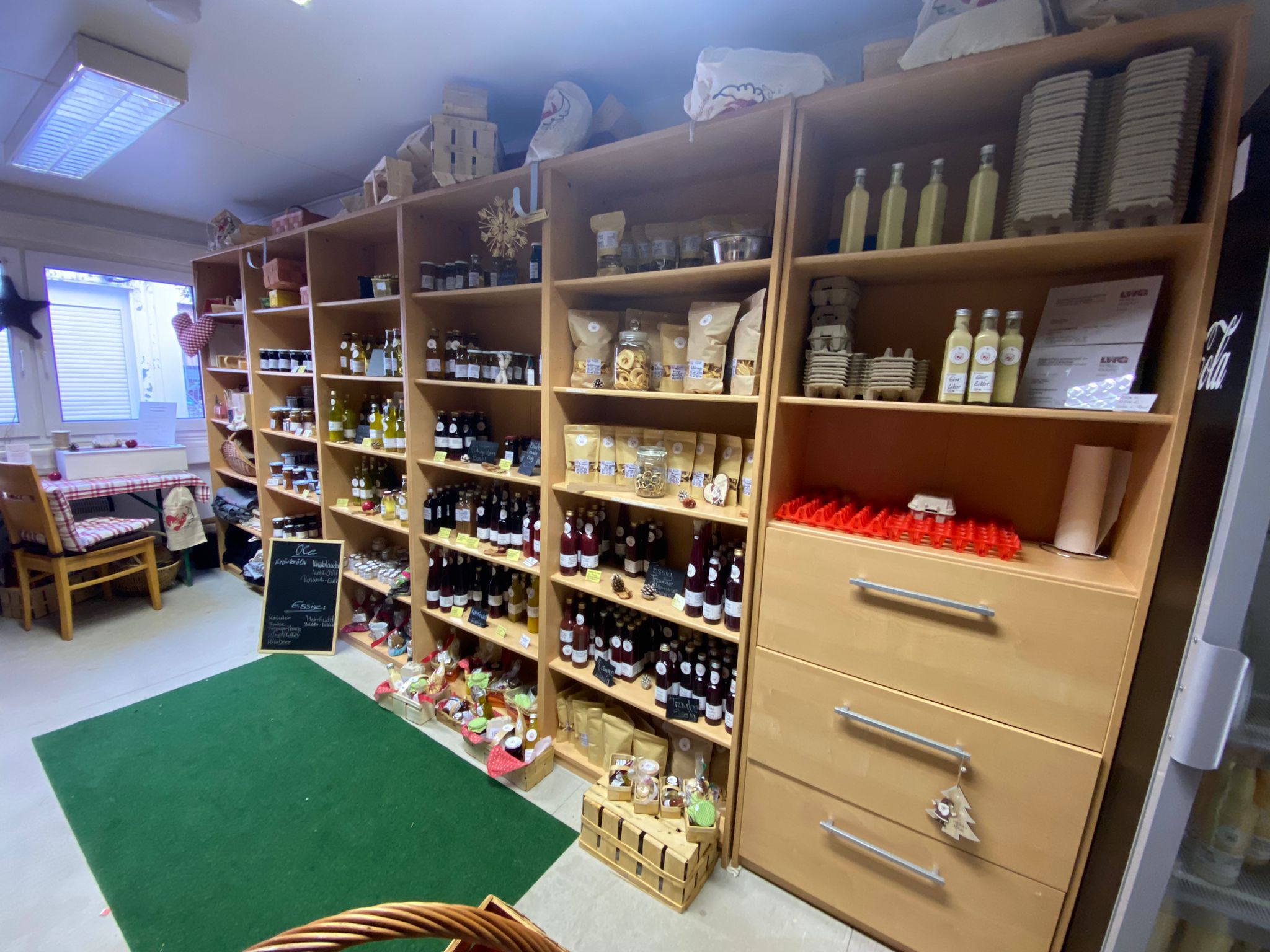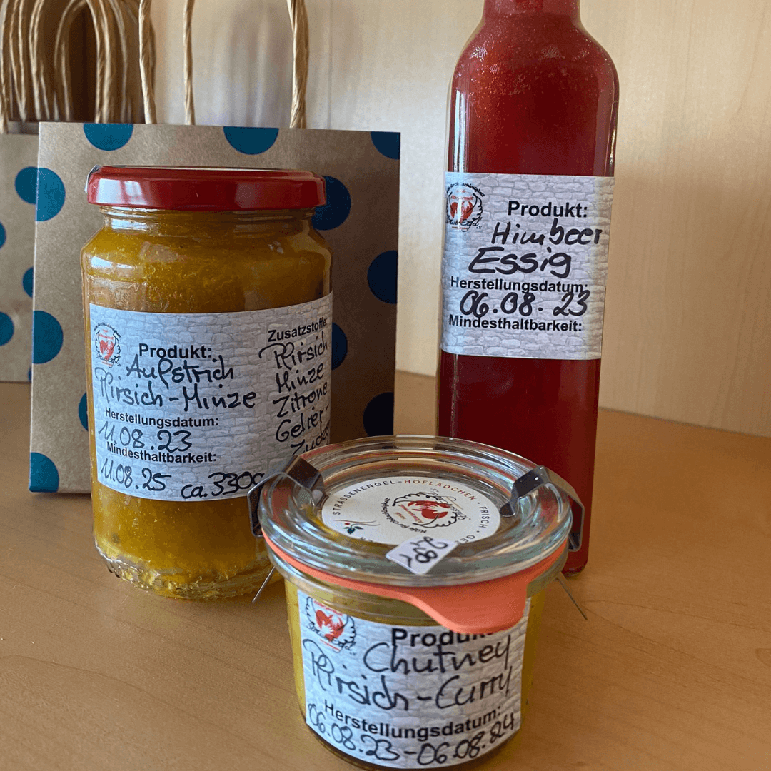 In unserem Hoflädchen erwartet Sie eine große Auswahl an Köstlichkeiten von frischen Eiern aus eigener Haltung über Frucht-Aufstriche bis hin zu Eierlikör und Essig-Variationen. Auch ganz prima als Mitbringsel und Präsent geeignet. Gerne erstellen wir auch Präsentkörbe.