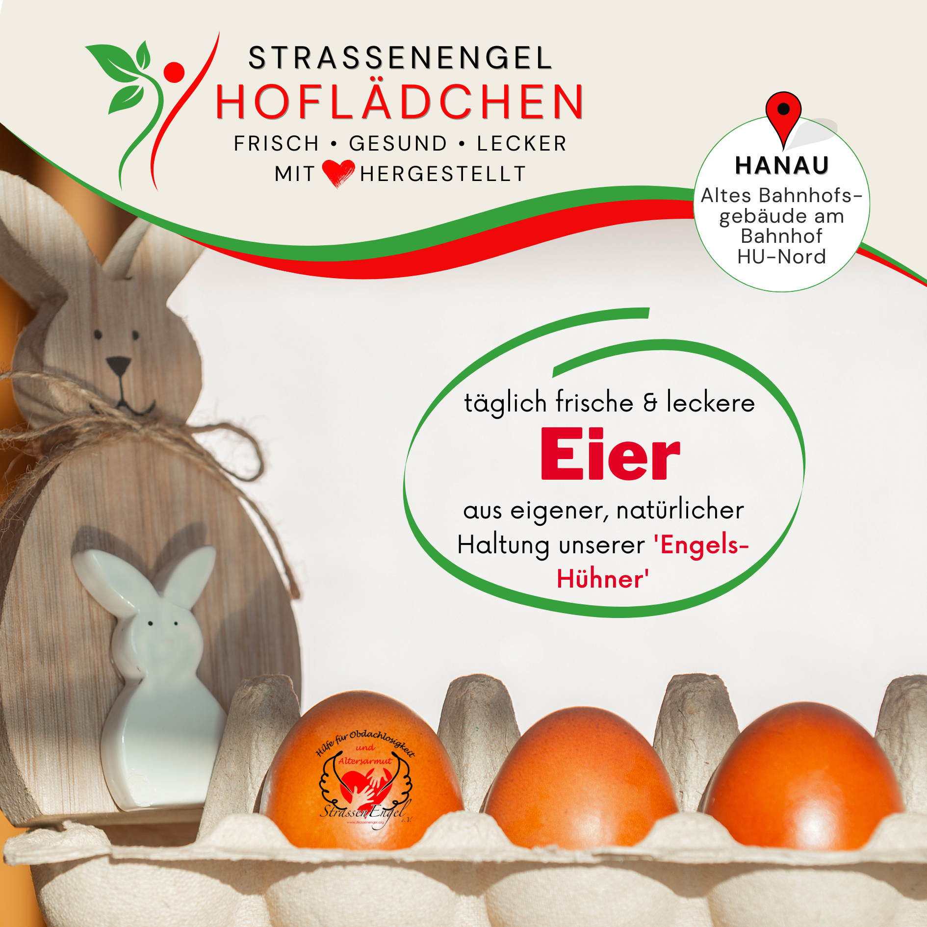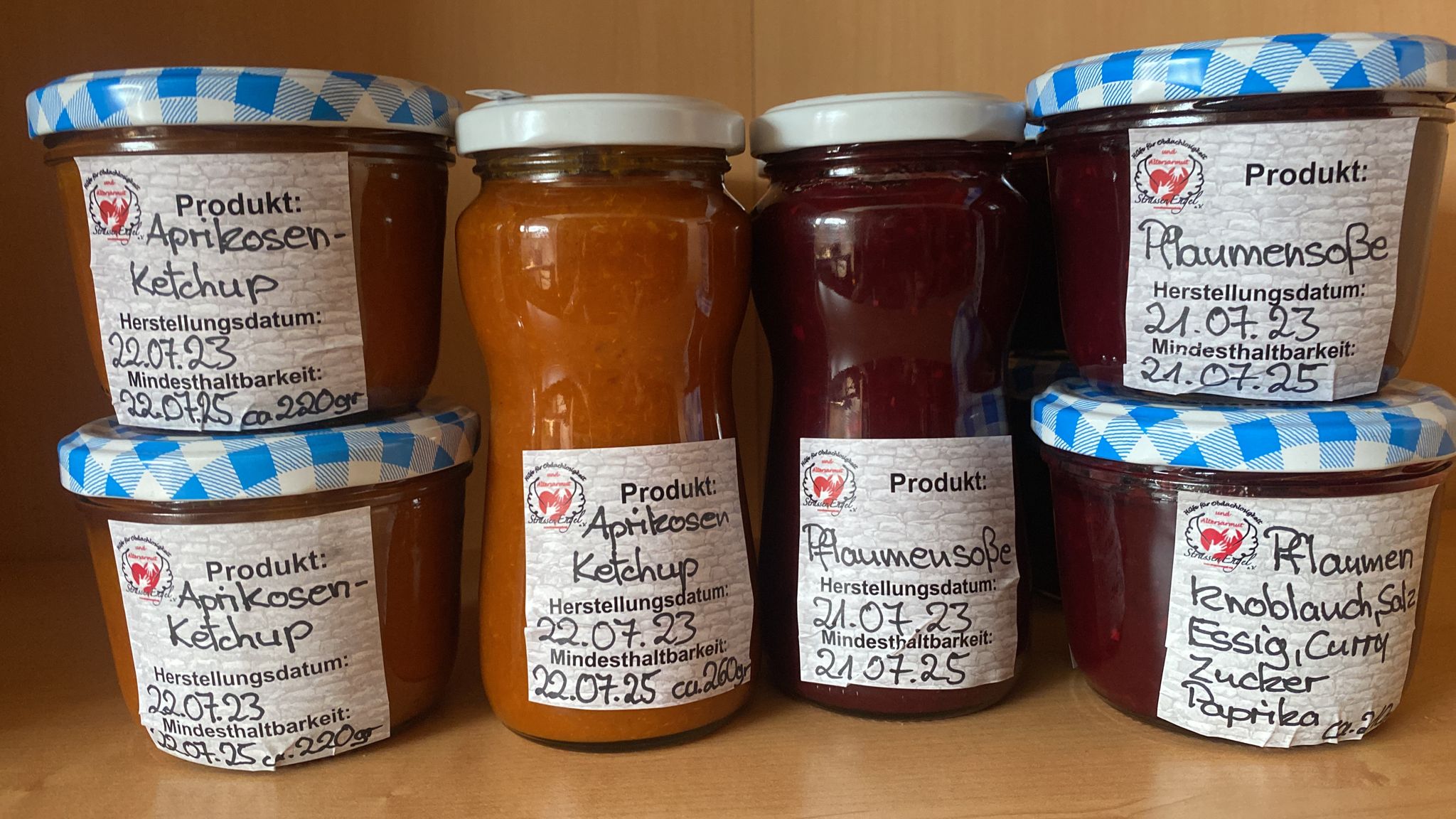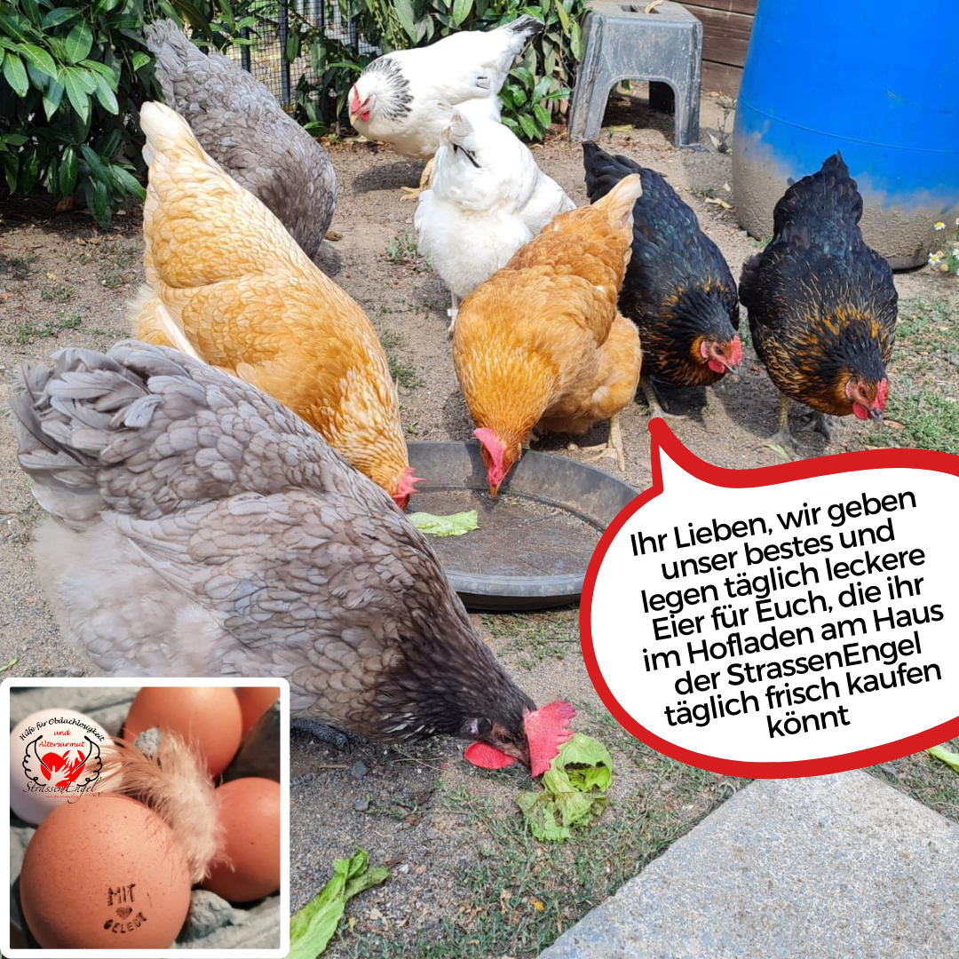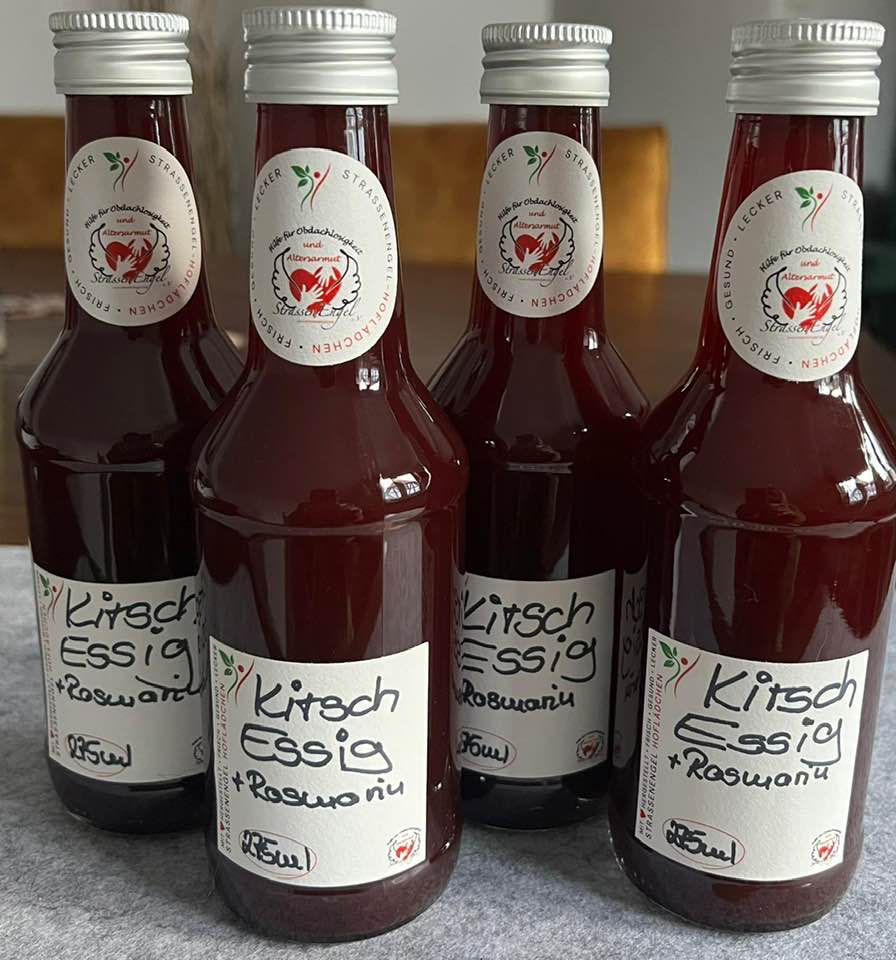 Alle Produkte wurden eigens von unserem StrassenEngel-Team liebevoll hergestellt - teilweise mit Zutaten aus eigenem Anbau in unserem urbanen Engels-Garten. Die Eier stammen aus eigener liebevoller Haltung unserer Engels-Hühner.